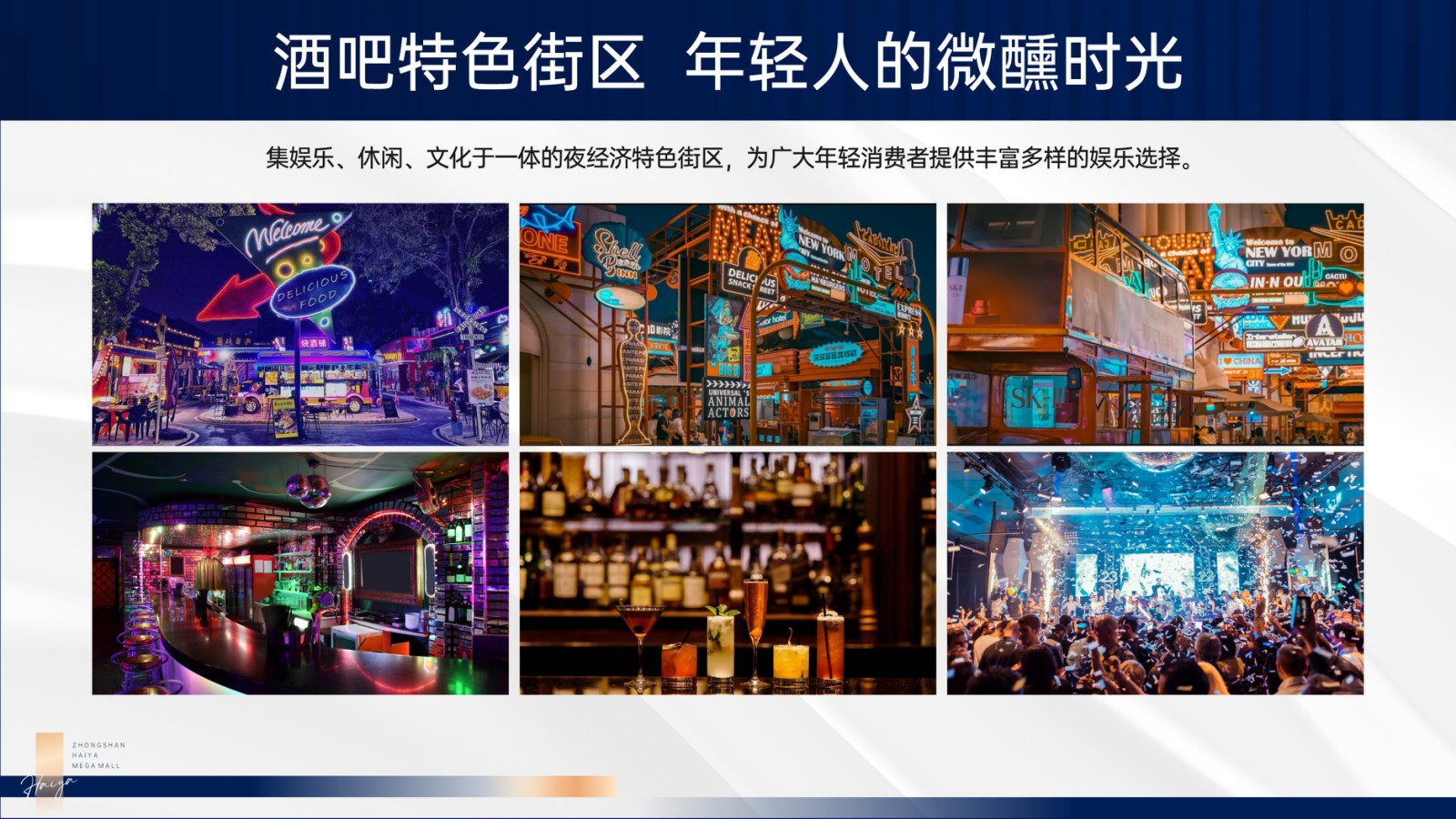 集聚全球優質商業資源 開啟灣區商業新紀元海雅繽紛天地部分主力店品牌約4萬㎡的蘭桂坊繽紛裏 潮流商業街區建面約1.3萬㎡的超大型鵬泰超市高端五星級國際酒店擁有無邊際泳池廣美力健健身中心潮流時尚的愛潮尚KTV擁有杜比全景身巨幕影廳的中影南方國際影院中山首家樂漫冰雪王國