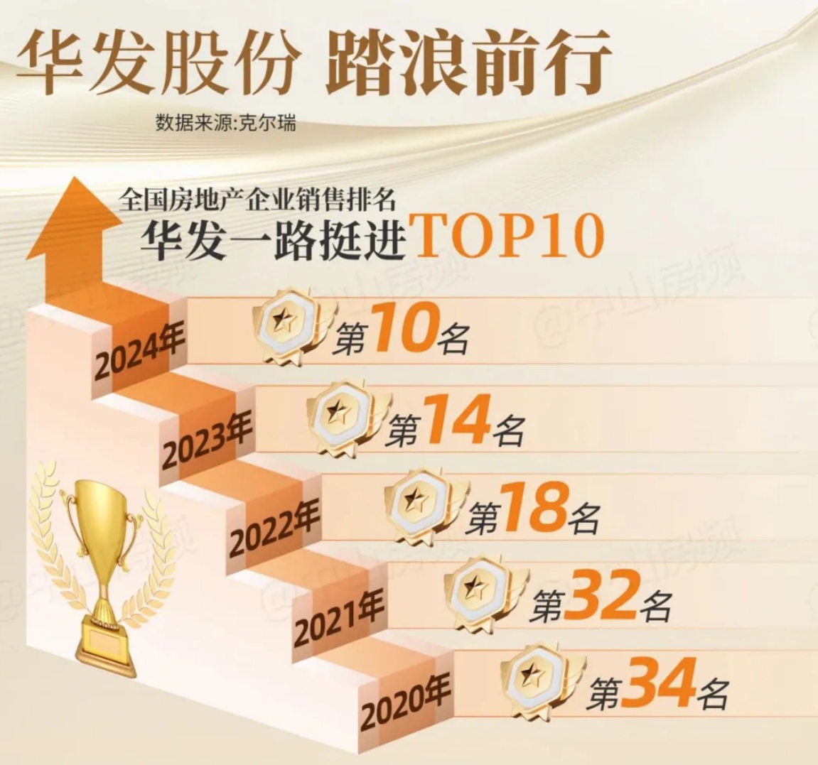 華發已進駐全國近50座重點城市,170餘個精品專案,服務業主60餘萬人。在珠海的房地產市場佔有率長期超過30%,2024年1-12月華發股份TOP1,佔據銷售金額及銷售面積雙榜單冠軍,銷售金額及面積分別為141.9億元/52.0萬㎡。珠海市場佔有率超56%!2024年邁入全國房產TOP前10。