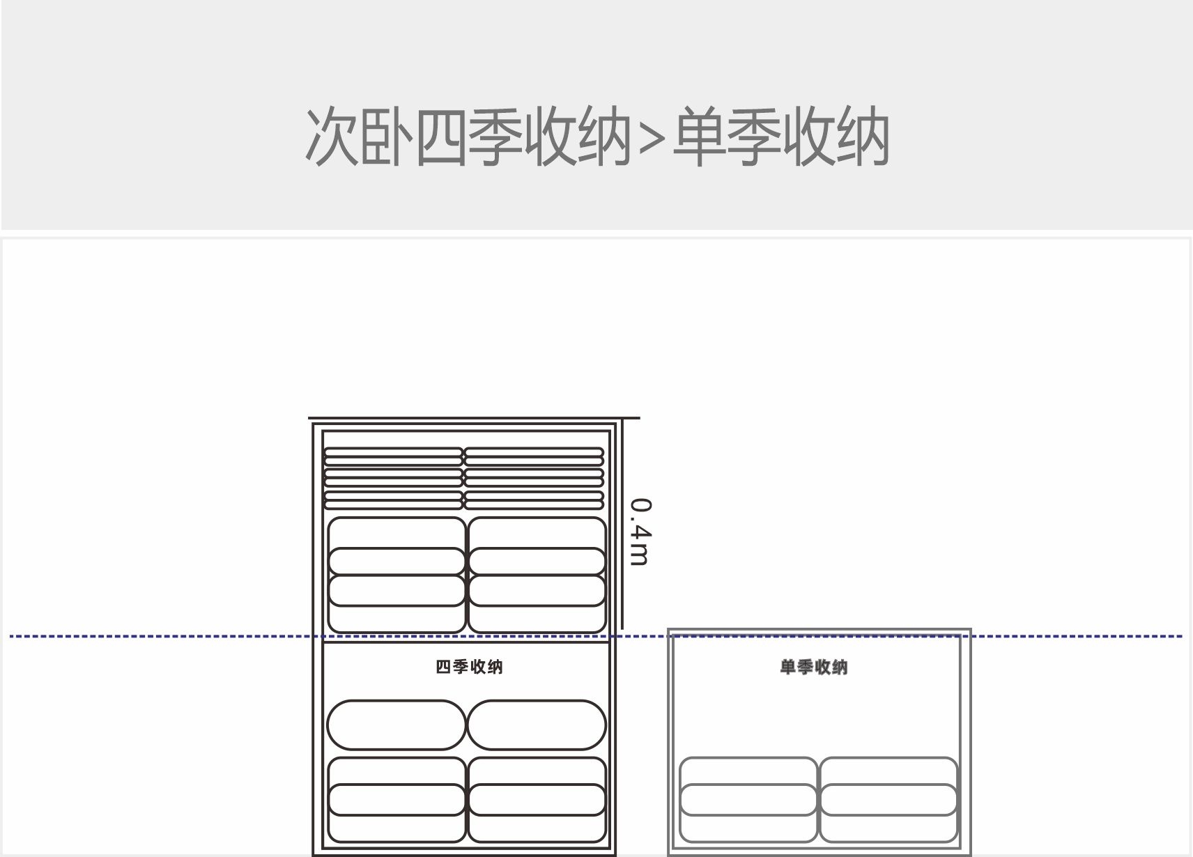 讓次臥也能擁有,主臥級的四季收納大櫥櫃;如果作為長輩房,也有更多富餘空間承載過冬的棉被和過季的衣物,有歸屬感父母才更願意長住。