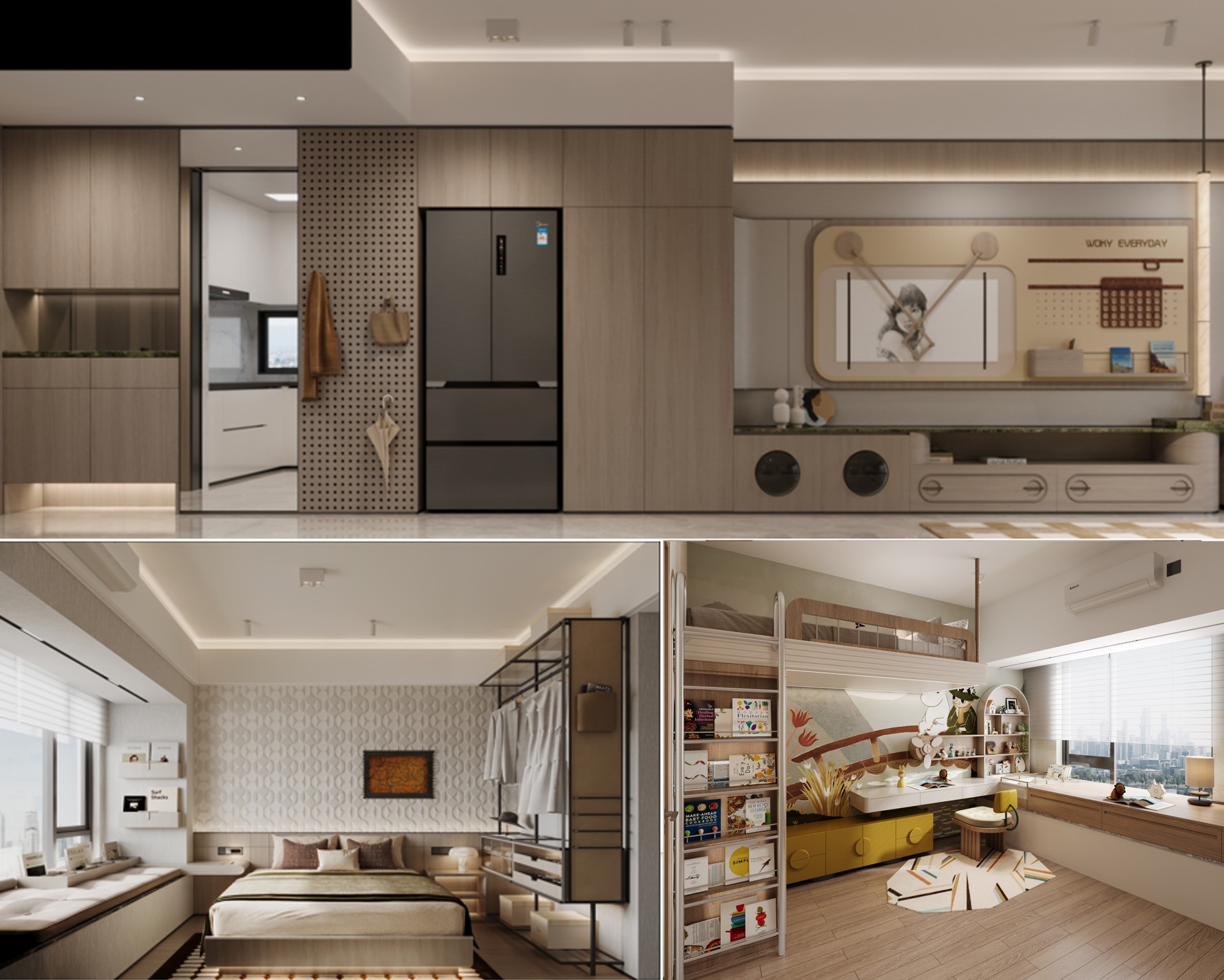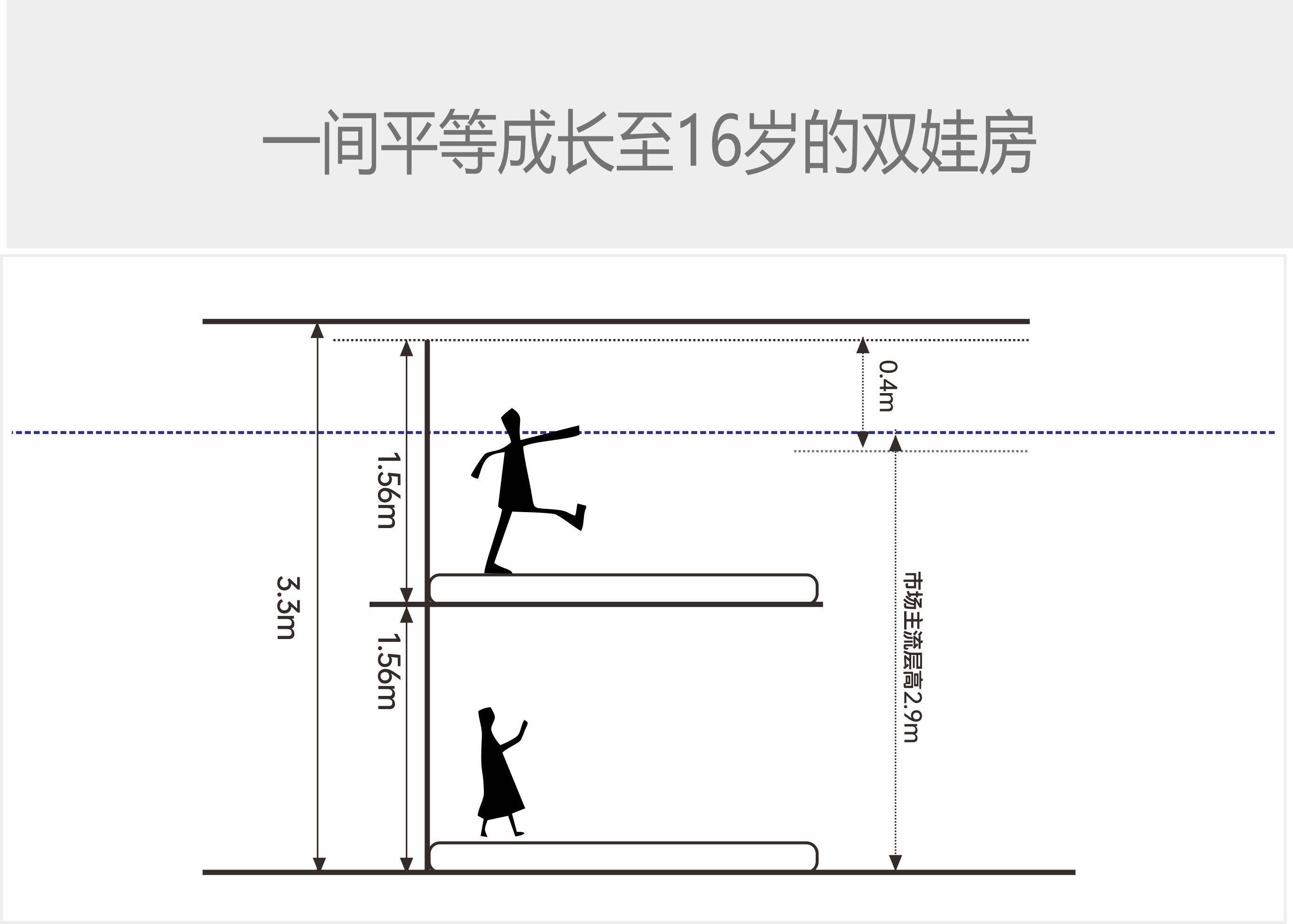 即使是三房戶型,也能給雙娃家庭一間能平等長大到16歲的兒童房。