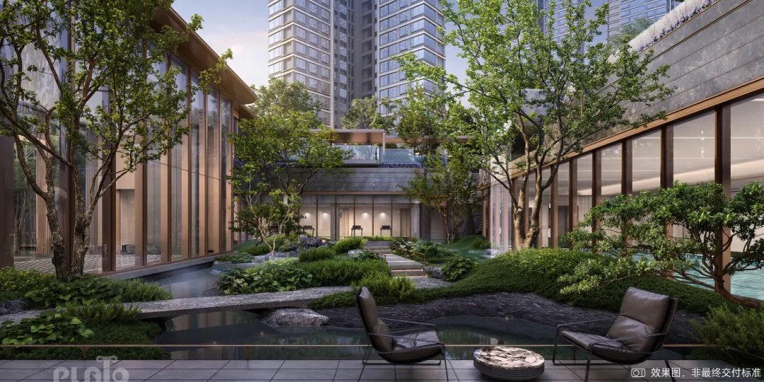 :東方園林山水造詣,層級疊錯。自然地形結合疊水疊石,形成特色森系庭院