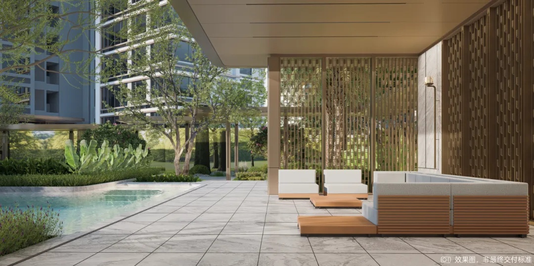 東方森系立體庭院,打造東方美學+網紅體驗的沉浸式森居生活;約95㎡網紅懸挑戶外景觀池,270°俯瞰立體森穀景觀,對望廣袤將軍山