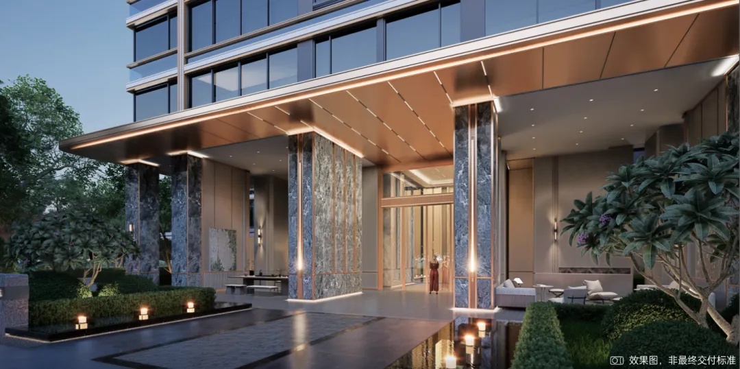 :無雨落客,儀式感歸家門庭,約70米超長奢闊延展面,約7米高門闕,氣度非凡儀式感滿滿