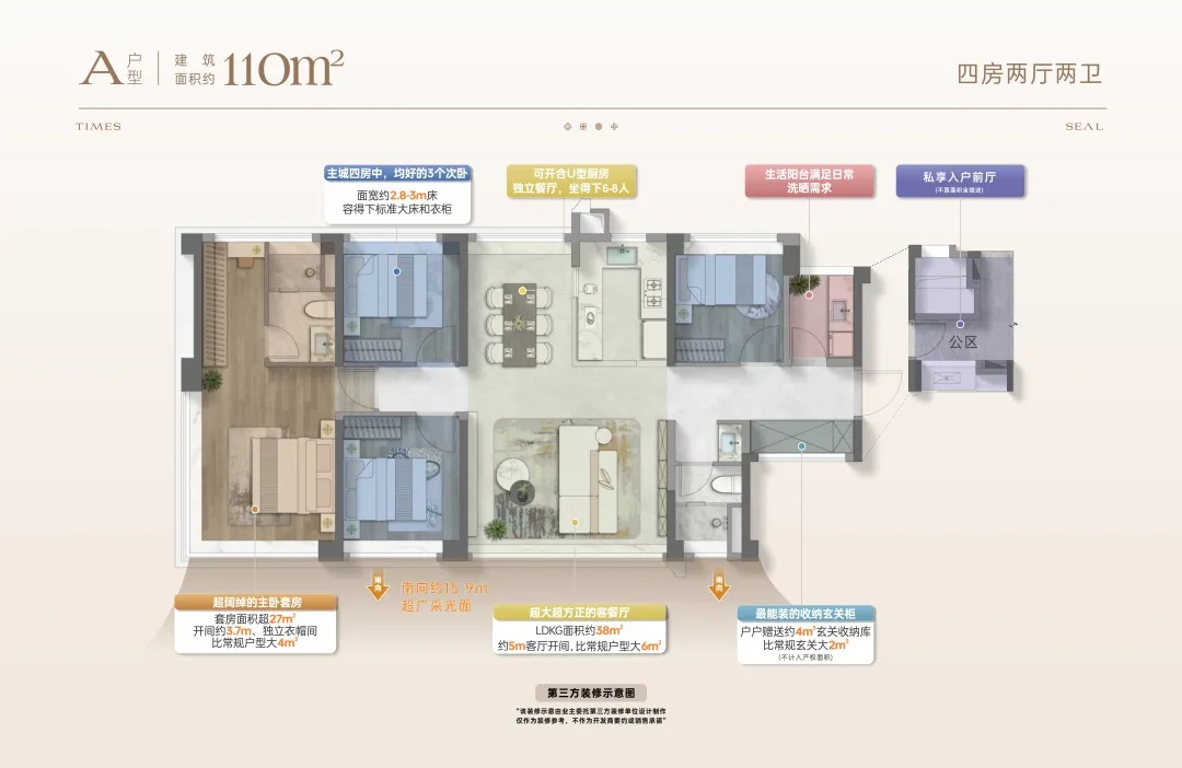 :約35㎡LDKB廳餐客一體化設計,可變雙套房;270°無遮擋視野,室內空間通透