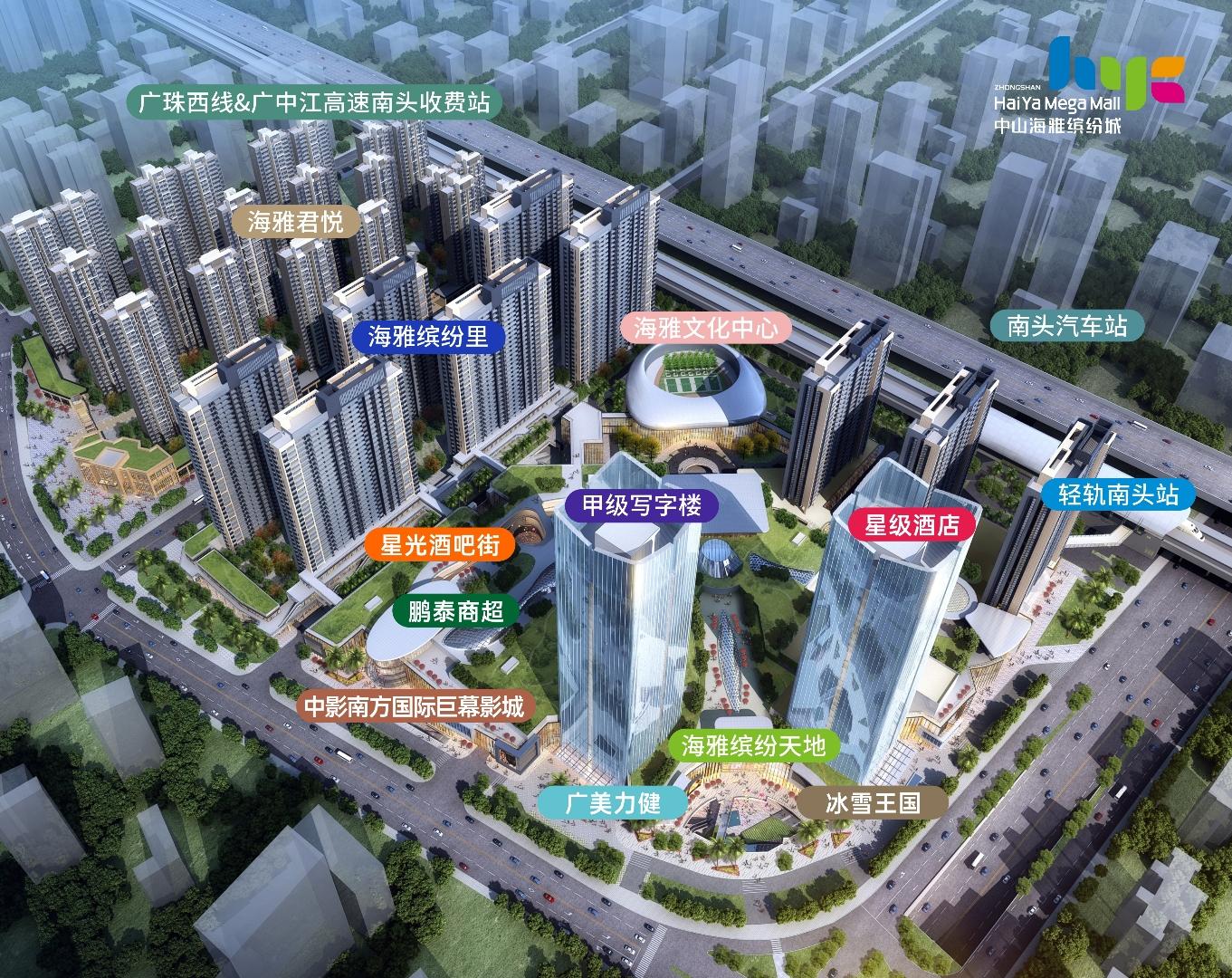 專案位於大灣區幾何中心、中山廣珠輕軌南頭站旁,總建面約120萬㎡,是由海雅集團斥資110億元打造的大型商業綜合體。專案集高端住宅、豪華公寓、超大型購物中心、蘭桂坊酒吧美食街區、星級酒店、甲級寫字樓、文化中心等多元物業形態於一體,是廣東省重點建設專案,中山市重大服務產業和重點工程建設專案。