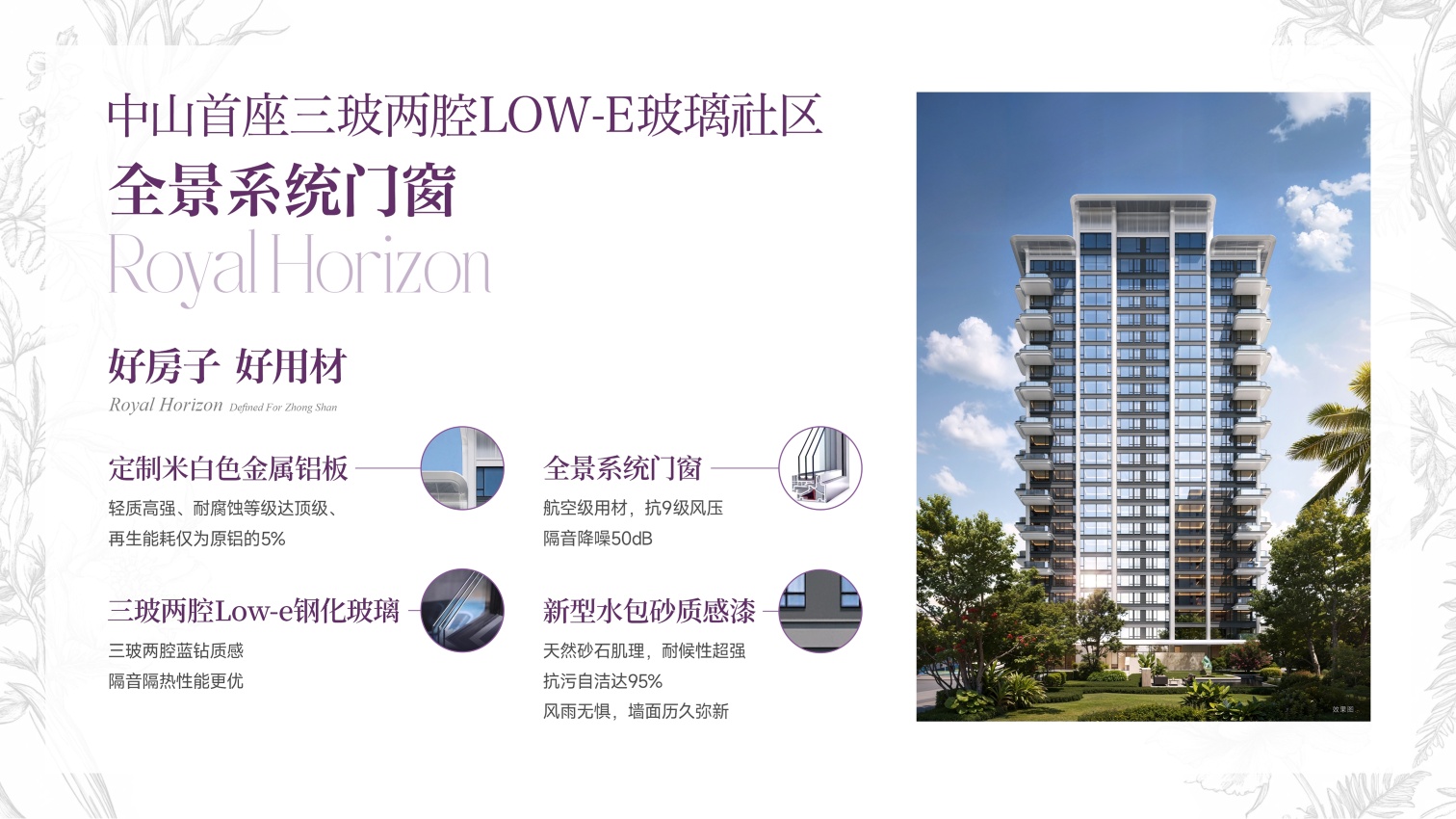 御宸歷經上百次方案推敲,匠築約1.99低容社區,著序中山首個【圍合式】超四代奢宅,實現超百米樓距,戶戶南向偏東約15°,目之所及皆雲庭。汲取水韻海洋美學,設計遊艇式公建化立面,以極致的線條感、儀式感與優雅的配色,形成曆久彌新、極具城市公共藝術感的封面藏品。