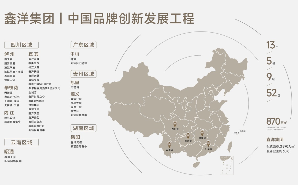 鑫洋集團,以“品質成就非凡”為品牌理念,以地產開發為核心,聚焦工程建設、生活服務、酒店管理、商業運營、服裝品牌管理等業務板塊。自2019年起 連續7年開發11座高品質四代住宅 以“只定制·不復制"的產品理念 為城市塔尖定制理想居所。